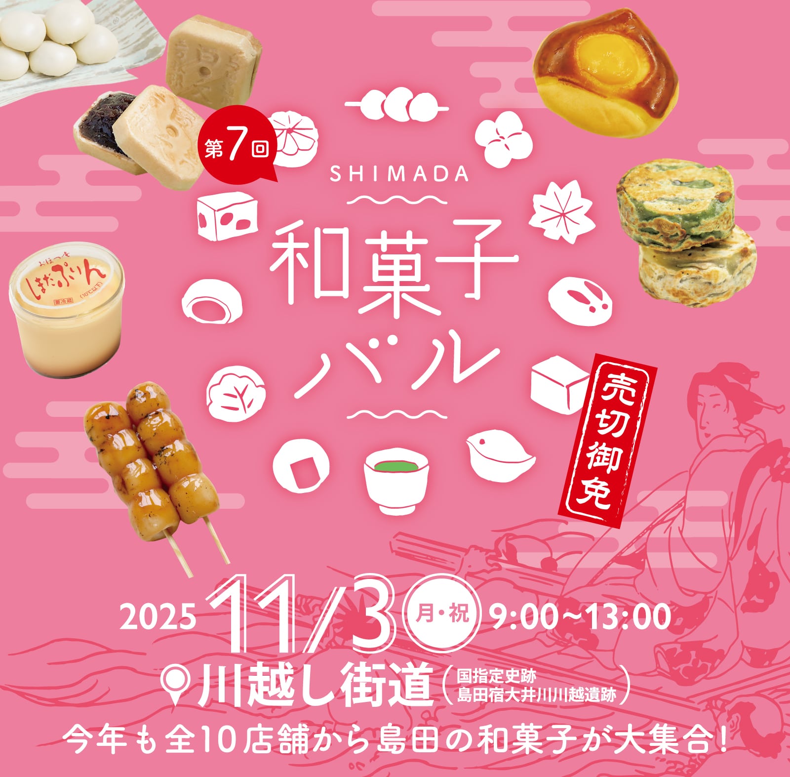 今年も市内10店舗の和菓子屋さんが川越し街道に大集合!